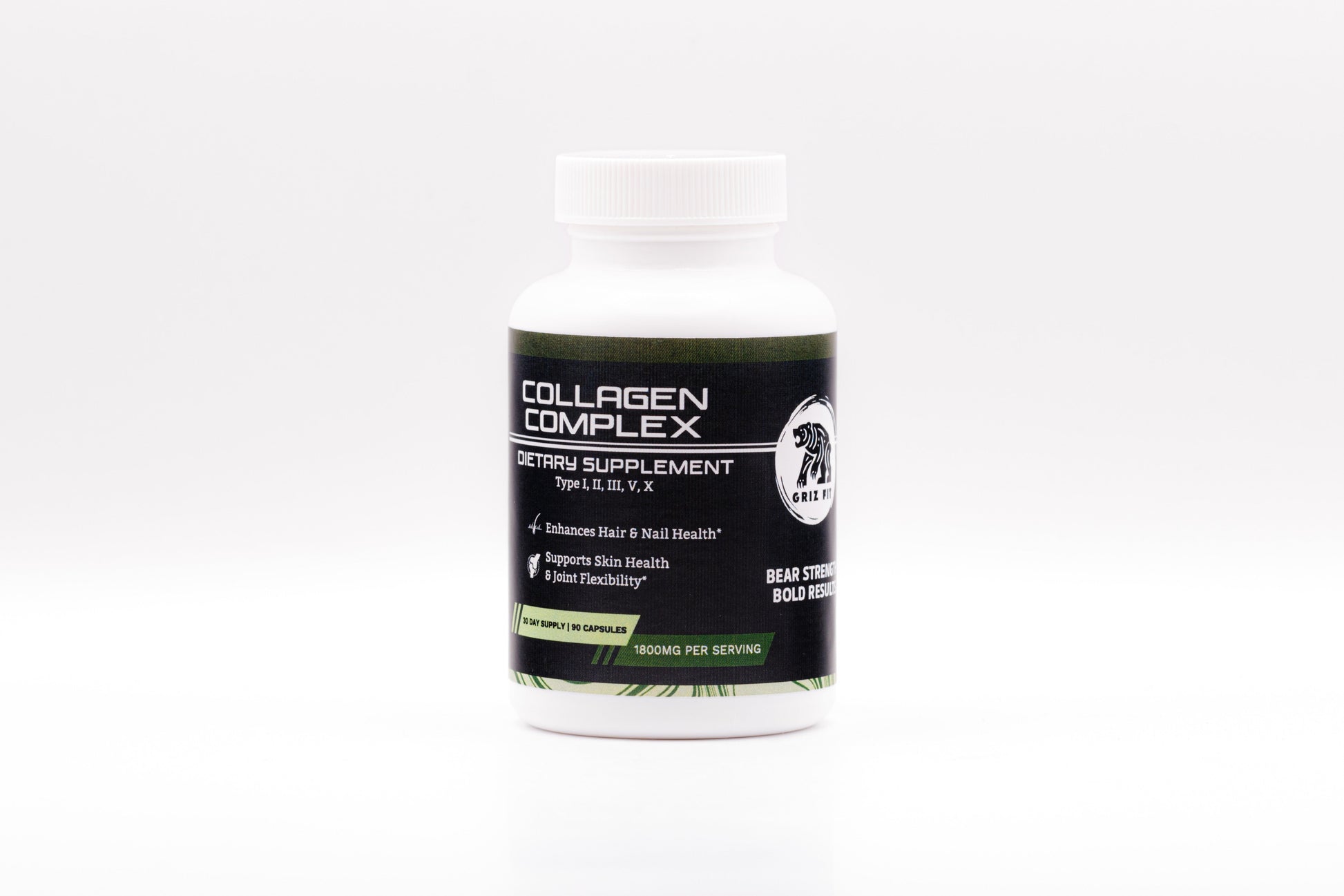 Take Griz Fit Collagen Complex daily for stronger hair, healthier skin, and more flexible joints—all in one powerful supplement!