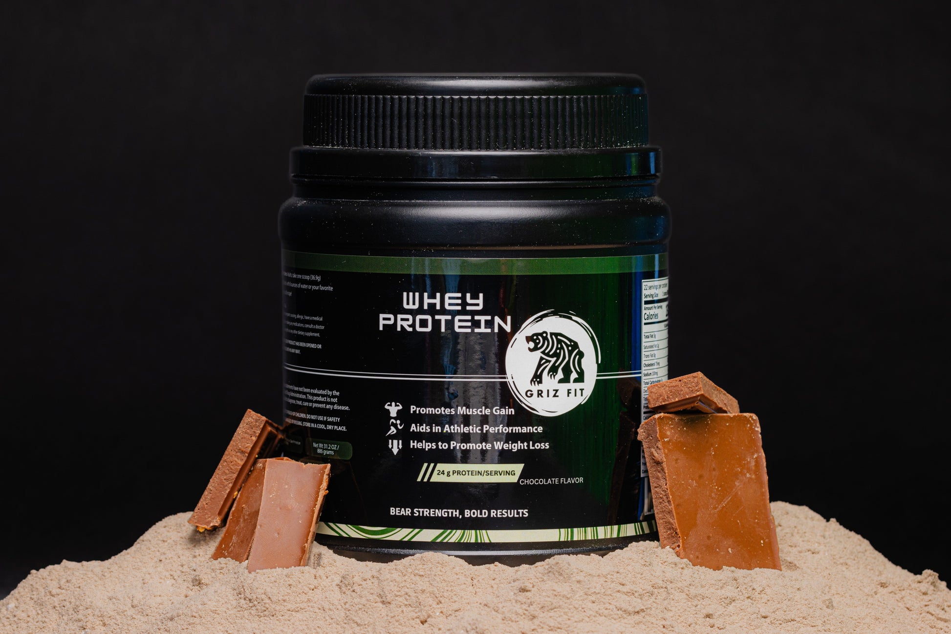 Treat yourself to the chocolatey goodness of Griz Fit Whey Protein Powder—your ultimate protein source for muscle, performance, and weight loss!